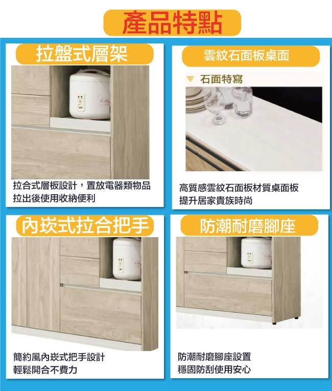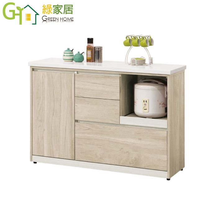 【綠家居】羅娜4尺雲紋石面拉盤低餐櫃