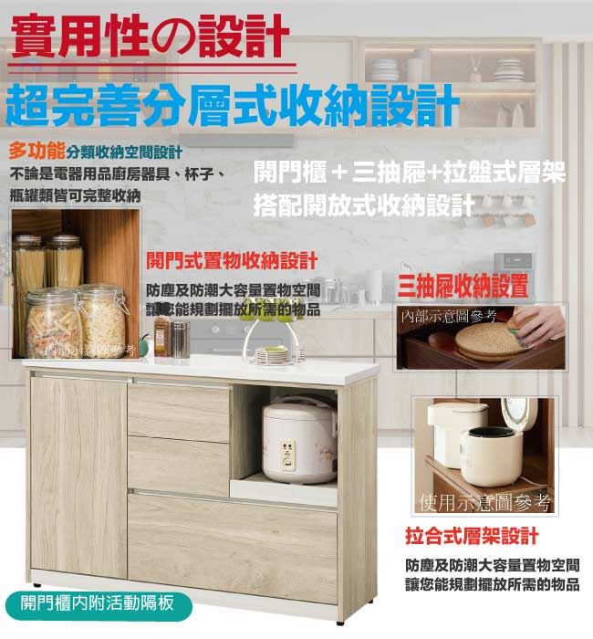 商品 介紹 | 【綠家居】羅娜4尺雲紋石面拉盤低餐櫃 木紋雙色系+現代簡約風格+安心材質製造,整體採用防蛀木心板+防潮耐磨腳座+五金滑軌結構+防夾手緩衝門片五金+20mm雲紋石面桌面板等安心材質製造,產品外層採用防潮耐磨噴漆處理搭配採用開門櫃+三抽屜+拉盤式層架+內&外開放式層格等收納空間設計,全由專人配送到家,專業安心服務,替你省下更多時間! 【商品特色】 木紋雙色系+現代簡約風格+安心材質製造,使用放心+搭配居家更便利 採用防蛀木心板+防潮耐磨腳座+五金滑軌結構+防夾手緩衝門片五金+20mm雲紋石面桌面板等安心材質製造 產品外層採用防潮耐磨噴漆處理 採用開門櫃+三抽屜+拉盤式層架+內&外開放式層格等收納空間設計 此商品不需要DIY組立,此商品為組立後之成品 品質保證、專業設計、貼心服務 全由專人配送到家,專業安心服務,替您省下更多時間 |