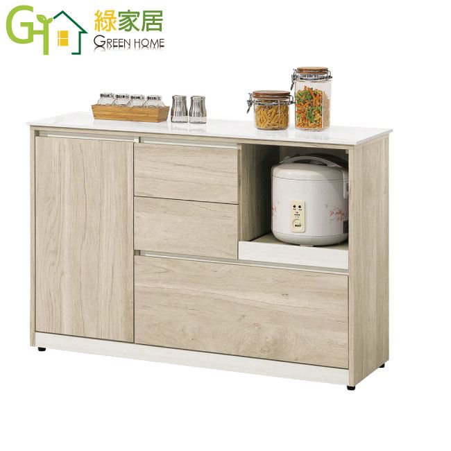 【綠家居】羅娜岩板4尺單門三抽拉盤低餐櫃
