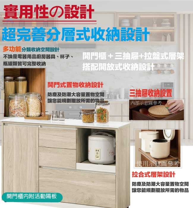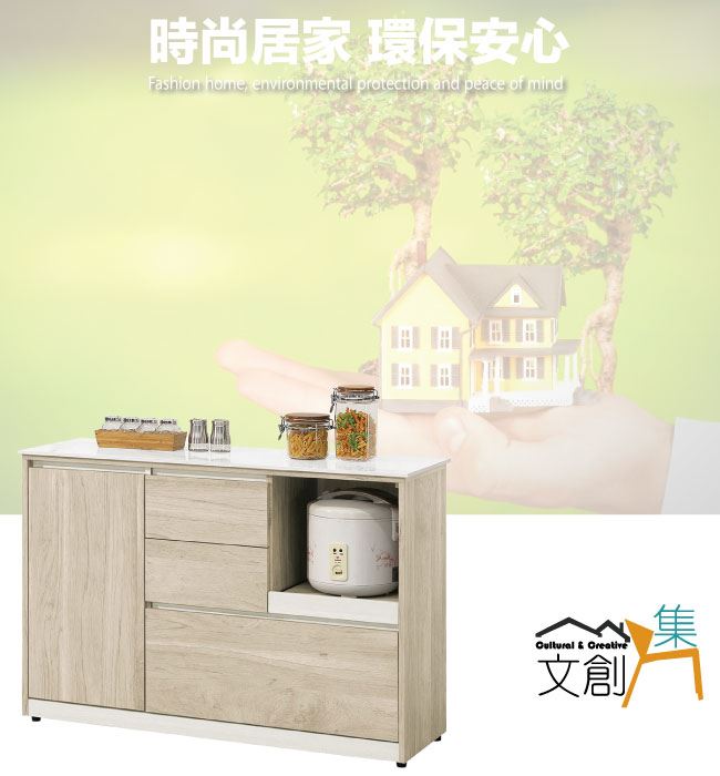 商品 介紹 | 【綠家居】羅娜岩板4尺單門三抽拉盤低餐櫃 木紋雙色系+現代簡約風格+安心材質製造,整體採用防蛀木心板+防潮耐磨腳座+五金滑軌結構+防夾手緩衝門片五金+12mm高硬度岩板桌面板等安心材質製造,產品外層採用防潮耐磨噴漆處理搭配採用開門櫃+三抽屜+拉盤式層架+內&外開放式層格等收納空間設計,全由專人配送到家,專業安心服務,替你省下更多時間! 【商品特色】 木紋雙色系+現代簡約風格+安心材質製造,使用放心+搭配居家更便利 採用防蛀木心板+防潮耐磨腳座+五金滑軌結構+防夾手緩衝門片五金+12mm高硬度岩板桌面板等安心材質製造 產品外層採用防潮耐磨噴漆處理 採用開門櫃+三抽屜+拉盤式層架+內&外開放式層格等收納空間設計 此商品不需要DIY組立,此商品為組立後之成品 品質保證、專業設計、貼心服務 全由專人配送到家,專業安心服務,替您省下更多時間 |