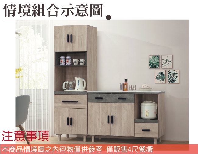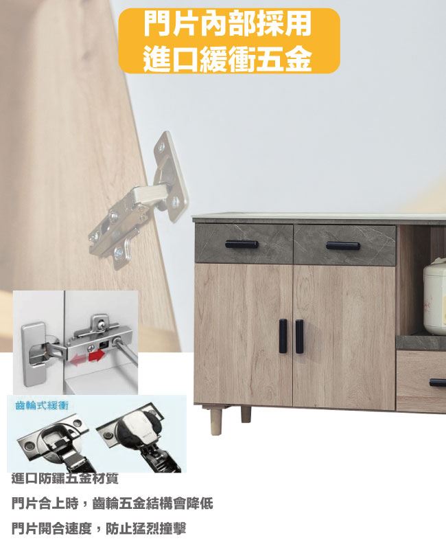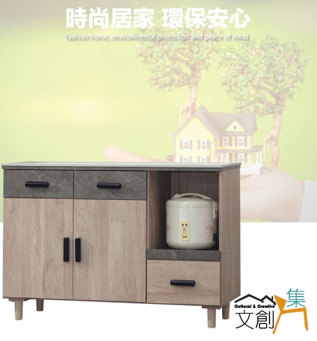 商品 介紹 | 【綠家居】路卡夫岩板4尺二門三抽餐櫃 木紋雙色系+現代簡約風格+安心材質製造,使用放心+搭配居家更便利,整體採用防蛀木心板+防潮耐磨腳座+12mm高硬度岩板桌面板+防夾手緩衝門片五金+五金滑軌結構等材質搭配外層採用優莉坦耐磨全包式噴漆處理 ,採用開門櫃+三抽屜+拉盤式層架+內&外開放層格等收納空間設計,全由專人配送到家,專業安心服務,替你省下更多時間! 【商品特色】 木紋雙色系+現代簡約風格+安心材質製造,使用放心+搭配居家更便利 防蛀木心板+防潮耐磨腳座+12mm高硬度岩板桌面板+防夾手緩衝門片五金+五金滑軌結構等材質 採用開門櫃+三抽屜+拉盤式層架+內&外開放層格等收納空間設計 此商品不需要DIY組立,此商品為組立後之成品 品質保證、專業設計、貼心服務 全由專人配送到家,專業安心服務,替您省下更多時間 |