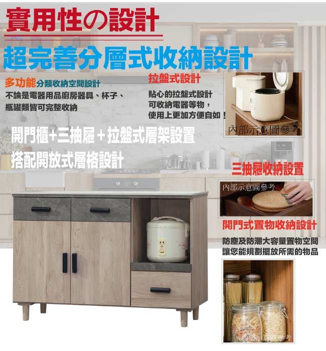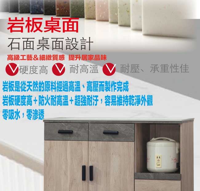 【綠家居】路卡夫岩板4尺二門三抽餐櫃