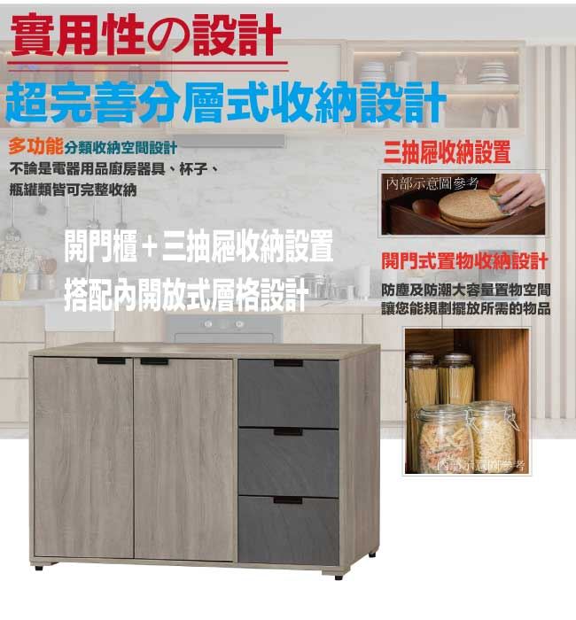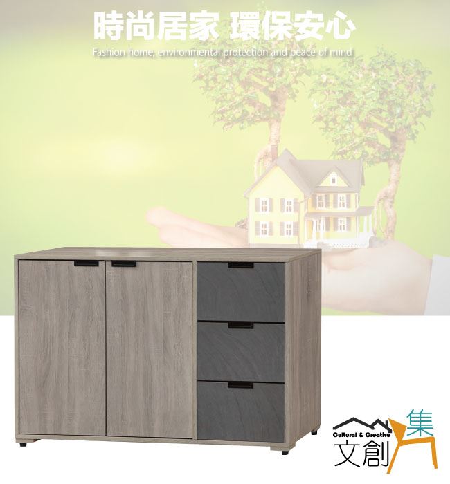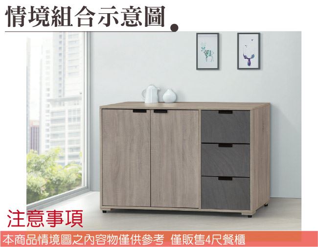 【綠家居】卡克斯4尺二門三抽低餐櫃