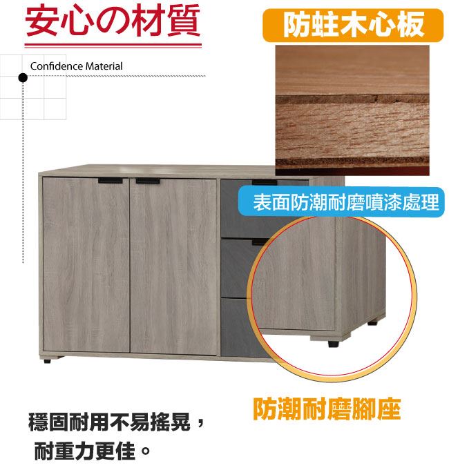 商品 介紹 | 【綠家居】卡克斯4尺二門三抽低餐櫃 木紋雙色系+現代簡約風格+安心材質製造,使用放心+搭配居家更便利,整體採用防蛀木心板+防潮耐磨腳座+防夾手緩衝門片五金+五金滑軌結構等材質搭配外層採用優莉坦耐磨全包式噴漆處理 ,採用開門櫃+三抽屜+內開放層格等收納空間設計,全由專人配送到家,專業安心服務,替你省下更多時間! 【商品特色】 木紋雙色系+現代簡約風格+安心材質製造,使用放心+搭配居家更便利 防蛀木心板+防潮耐磨腳座+防夾手緩衝門片五金+五金滑軌結構等材質 採用開門櫃+三抽屜+內開放層格等收納空間設計 此商品不需要DIY組立,此商品為組立後之成品 品質保證、專業設計、貼心服務 全由專人配送到家,專業安心服務,替您省下更多時間 |