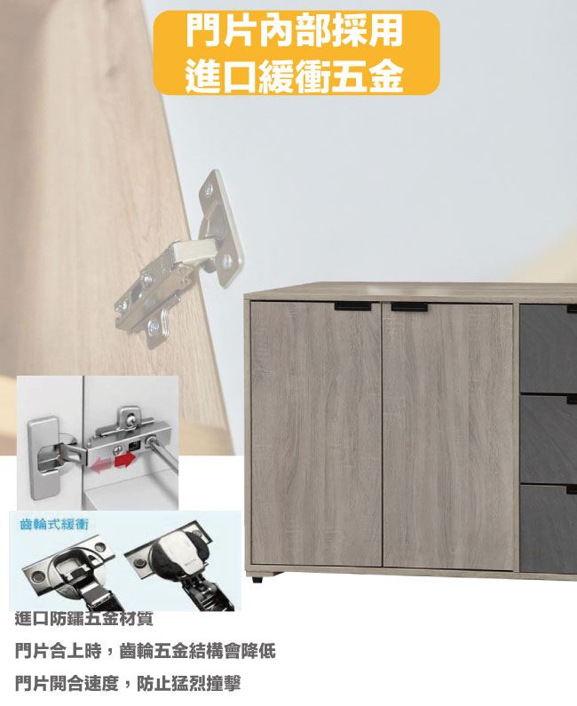 五金滑軌結構+防夾手緩衝五金