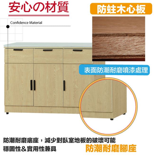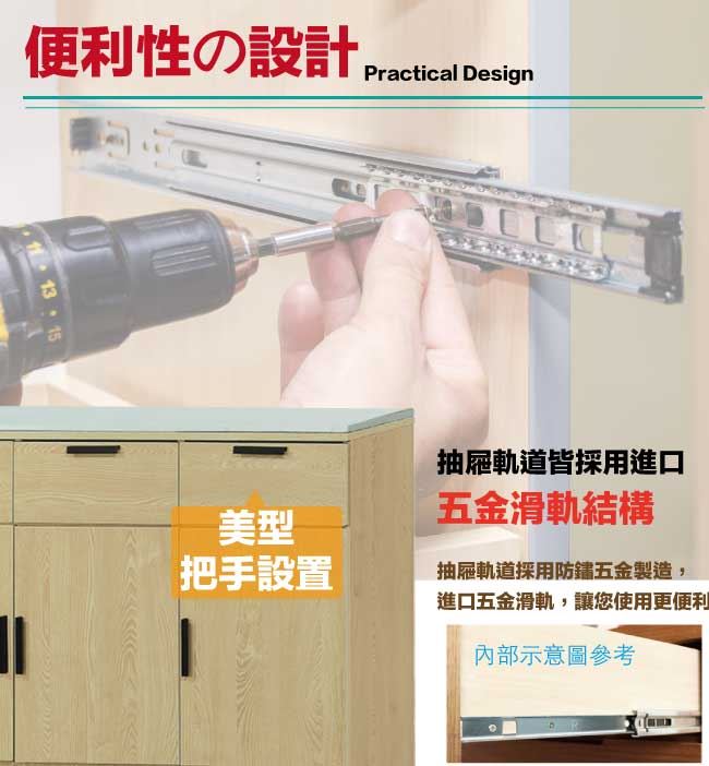 商品 介紹 | 【綠家居】路思樂4尺雲紋石面餐櫃 橡木紋色系+現代簡約風格+安心材質製造,整體採用防蛀木心板+防潮耐磨腳座+防夾手緩衝門片五金+五金滑軌結構+12mm雲紋石面桌面板等安心材質製造,產品外層採用防潮耐磨噴漆處理搭配採用開門櫃+三抽屜+內開放式層格等收納空間設計,全由專人配送到家,專業安心服務,替你省下更多時間! 【商品特色】 橡木紋色系+現代簡約風格+安心材質製造,使用放心+搭配居家更便利 採用防蛀木心板+防潮耐磨腳座+防夾手緩衝門片五金+五金滑軌結構+12mm雲紋石面桌面板等安心材質製造 產品外層採用防潮耐磨噴漆處理 採用開門櫃+三抽屜+內開放式層格等收納空間設計 此商品不需要DIY組立,此商品為組立後之成品 品質保證、專業設計、貼心服務 全由專人配送到家,專業安心服務,替您省下更多時間 |