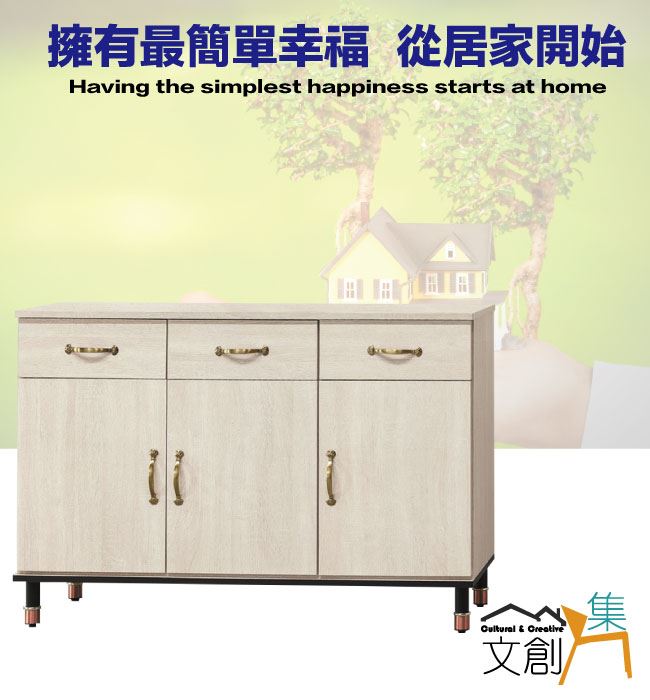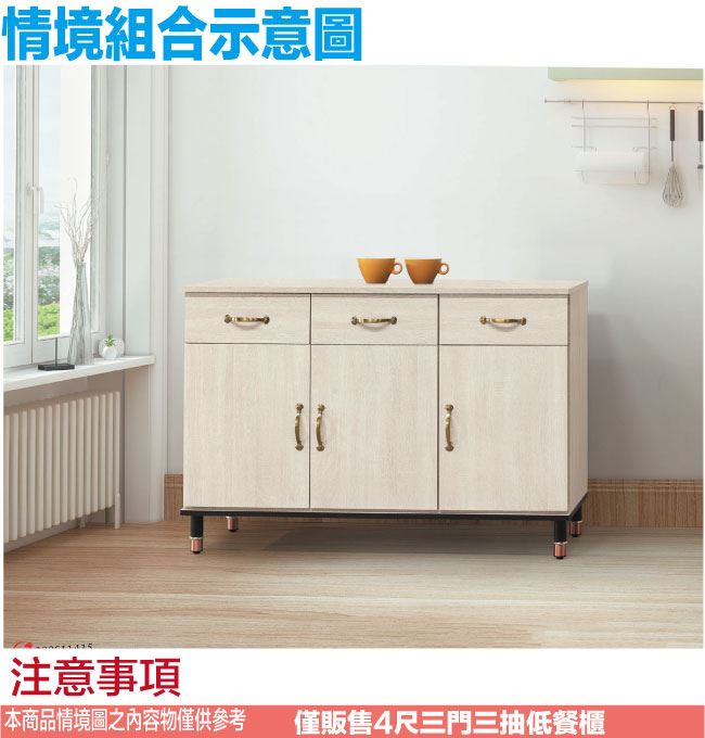 【綠家居】洛里奇4尺三門三抽低餐櫃