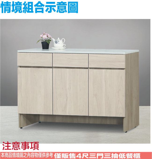 【綠家居】德維雙色4尺三門三抽低餐櫃