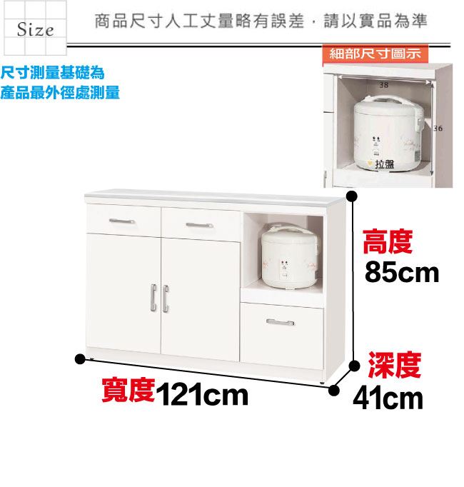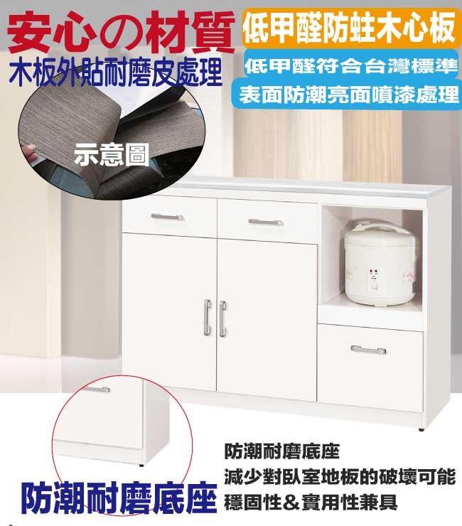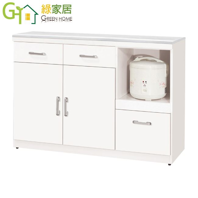 商 品 介 紹 | 【綠家居】巴克雅4尺岩板三抽拉盤低餐櫃/收納櫃 簡約白色系+現代簡約風格+安心材質製造,整體採用防蛀木心板+防潮耐磨腳座+五金滑軌結構+12mm高硬度岩板桌面板等安心材質製造,產品外層表面採用防潮亮面噴漆處理 搭配採用開門櫃+三抽屜+拉合式層盤+內&外開放層格等收納空間設計,全由專人配送到家,專業安心服務,替你省下更多時間! 【商品特色】 簡約白色系+現代簡約風格+安心材質製造,使用放心+搭配居家更便利 採用防蛀木心板+防潮耐磨腳座+五金滑軌結構+12mm高硬度岩板桌面板等安心材質製造 搭配採用開門櫃+三抽屜+拉合式層盤+內&外開放層格等收納空間設計 此商品不需要DIY組立,此商品為組立後之成品 品質保證、專業設計、貼心服務 全由專人配送到家,專業安心服務,替您省下更多時間