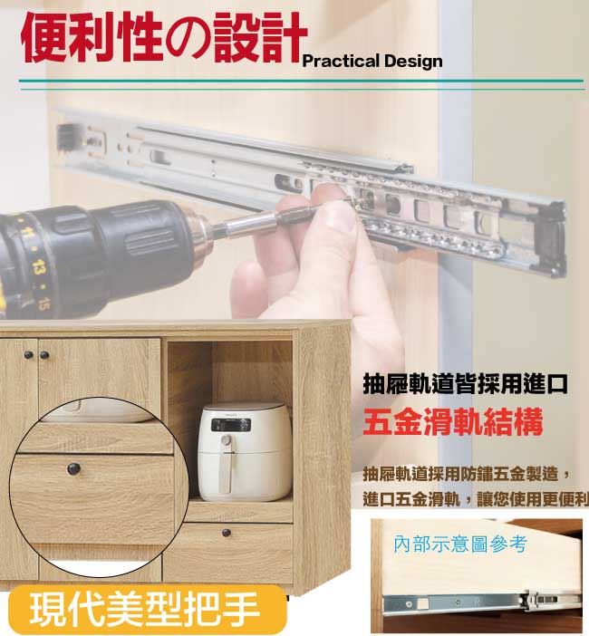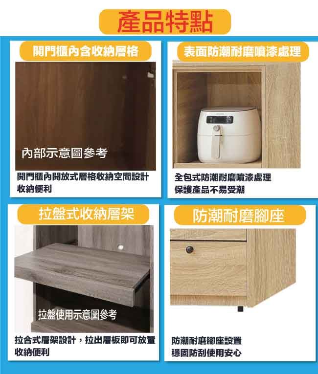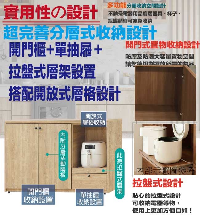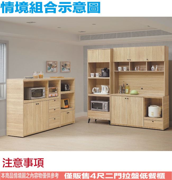 商 品 介 紹 | 【綠家居】麥比4尺二門拉盤低餐櫃/電器櫃 梧桐木紋色系+現代簡約風格+安心材質製造,使用放心+搭配居家更便利,整體採用防蛀木心板+防潮耐磨腳座+五金滑軌結構+防夾手緩衝門片五金等材質搭配外層採用優莉坦耐磨全包式噴漆處理 ,採用開門櫃+拉盤式層架+單抽屜+開放層格等收納空間設計,全由專人配送到家,專業安心服務,替你省下更多時間! 【商品特色】 梧桐木紋色系+現代簡約風格+安心材質製造,使用放心+搭配居家更便利 防蛀木心板+防潮耐磨腳座+五金滑軌結構+防夾手緩衝門片五金等材質 採用開門櫃+拉盤式層架+單抽屜+開放層格等收納空間設計 此商品不需要DIY組立,此商品為組立後之成品 品質保證、專業設計、貼心服務 全由專人配送到家,專業安心服務,替您省下更多時間