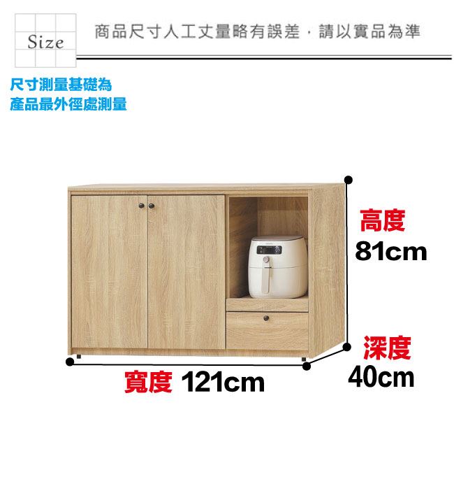 材質 | ◆產品名稱:【綠家居】麥比4尺二門拉盤低餐櫃/電器櫃 尺寸:(寬)120x(深)40x(高)81/公分 ◆材質: 材質:防蛀木心板+防潮耐磨腳座+防夾手緩衝門片五金+五金滑軌結構 噴漆:防潮耐磨噴漆處理 |