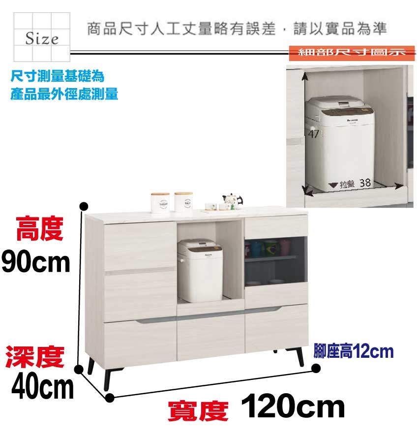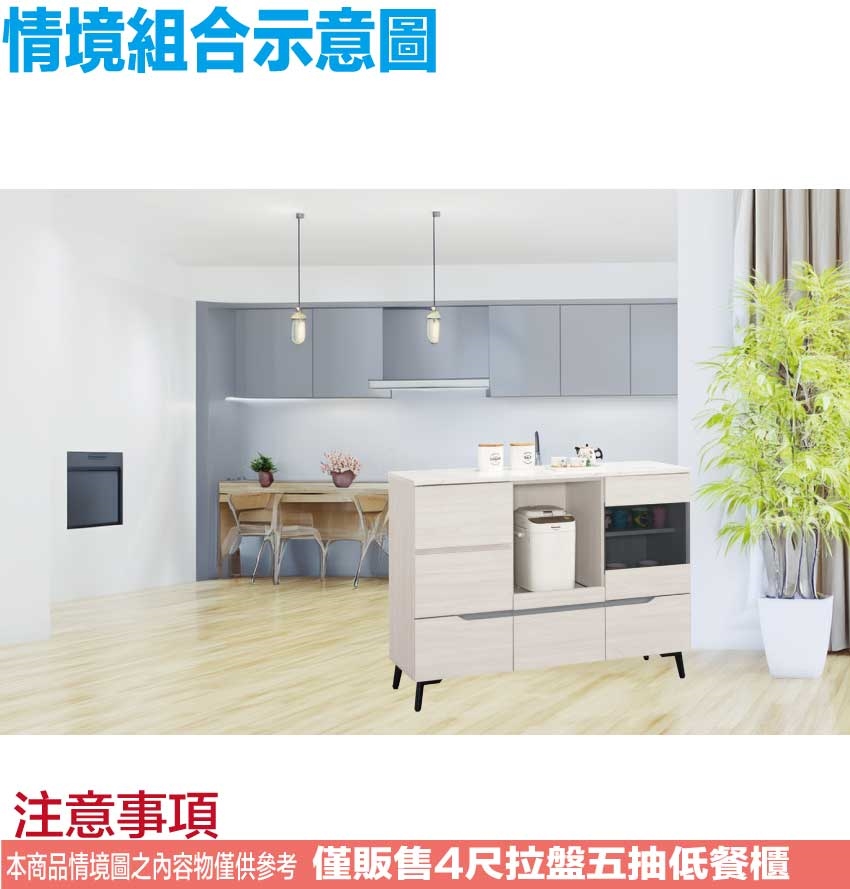 - ◆產品名稱:【綠家居】丹尼4尺開門拉盤低餐櫃