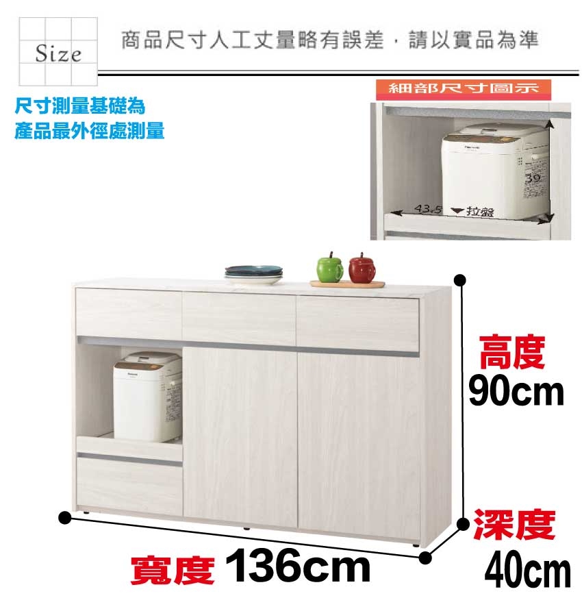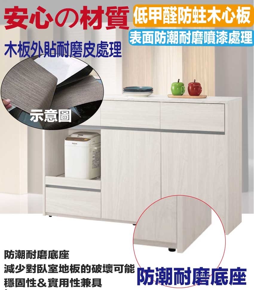 - ◆產品名稱:【綠家居】華爾雙色4.5尺二門拉盤低餐櫃