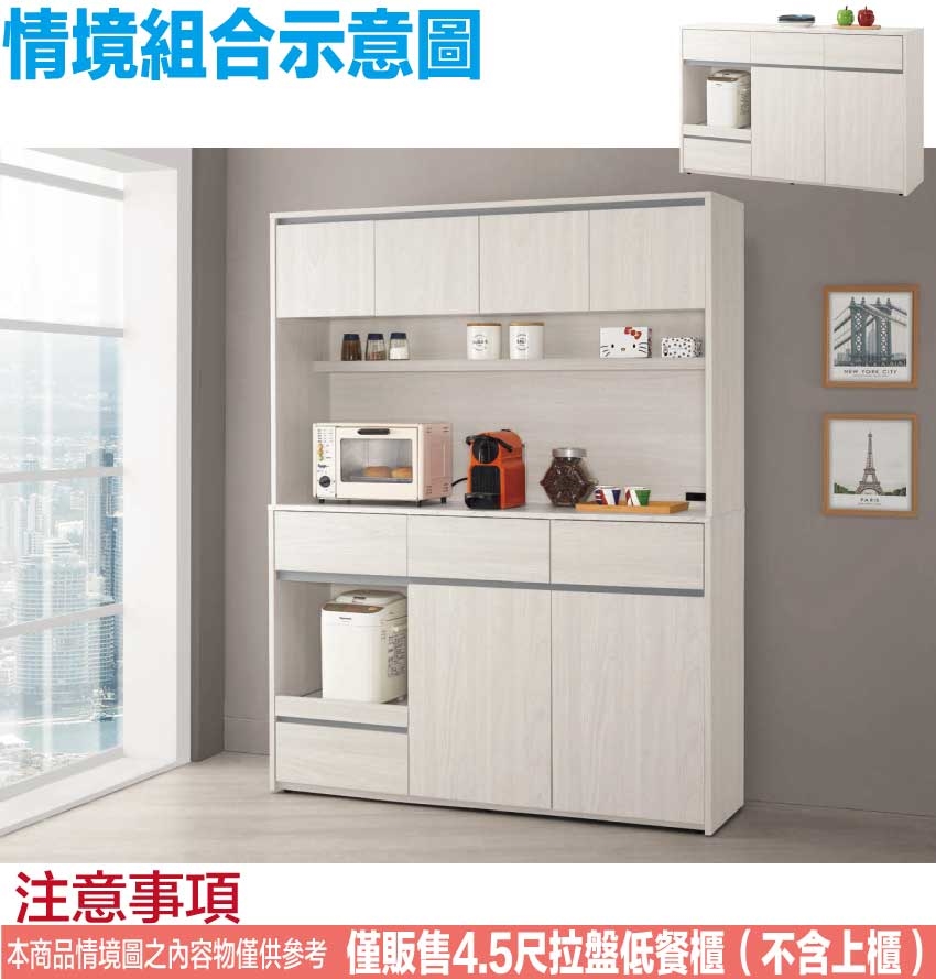 【綠家居】華爾雙色4.5尺二門拉盤低餐櫃