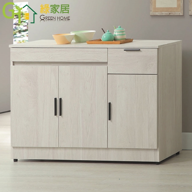 ★偏遠地區需額外加收運費,下標請先問與答詢問★ ★下訂前注意 由於商品流動較快,下訂前請先詢問是否有貨在下訂喔~★ 【綠家居】夏斯4尺三門二抽餐櫃 現代雙色系+安心材質製造,使用放心+搭配居家更便利,採用防蛀木心板+防夾手緩衝門片五金+防潮耐磨底座+五金滑軌結構等安心材質製造 ,外層採用防潮耐磨噴漆處理搭配採用開門櫃+二抽屜+內開放層格等收納空間設計,全由專人配送到家,專業安心服務,替你省下更多時間!