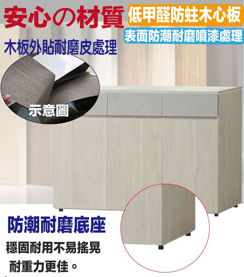 ★偏遠地區需額外加收運費,下標請先問與答詢問★ ★下訂前注意 由於商品流動較快,下訂前請先詢問是否有貨在下訂喔~★ 【綠家居】莫森4尺岩板三抽低餐櫃 現代雙色系+安心材質製造,使用放心+搭配居家更便利,採用防蛀木心板+防潮耐磨底座+防夾手緩衝門片五金+12mm高硬度岩板桌面板+五金滑軌結構等安心材質製造 ,外層採用防潮耐磨噴漆處理搭配採用開門櫃+三抽屜+內開放層格等收納空間設計,全由專人配送到家,專業安心服務,替你省下更多時間!