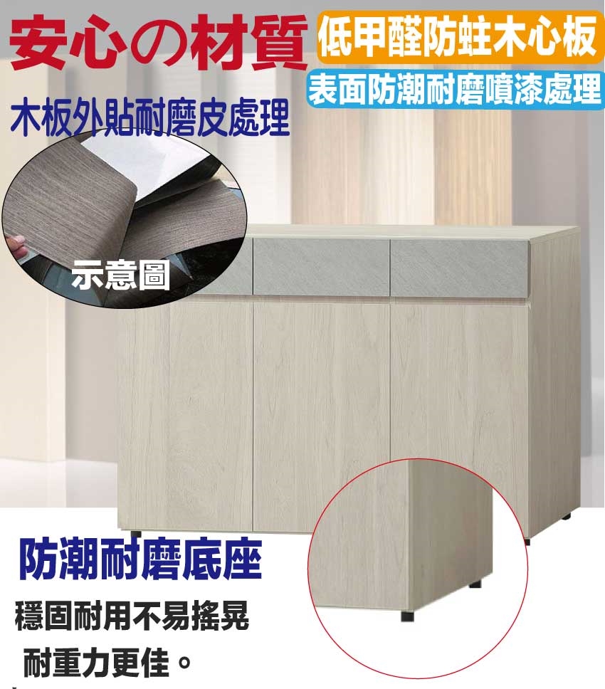 材質:防蛀木心板+防潮耐磨底座+防夾手緩衝門片五金+五金滑軌結構