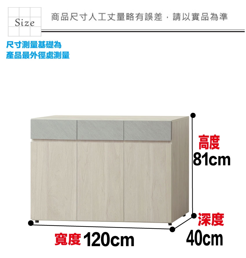 - ◆產品名稱:【綠家居】莫森4尺三門三抽低餐櫃
