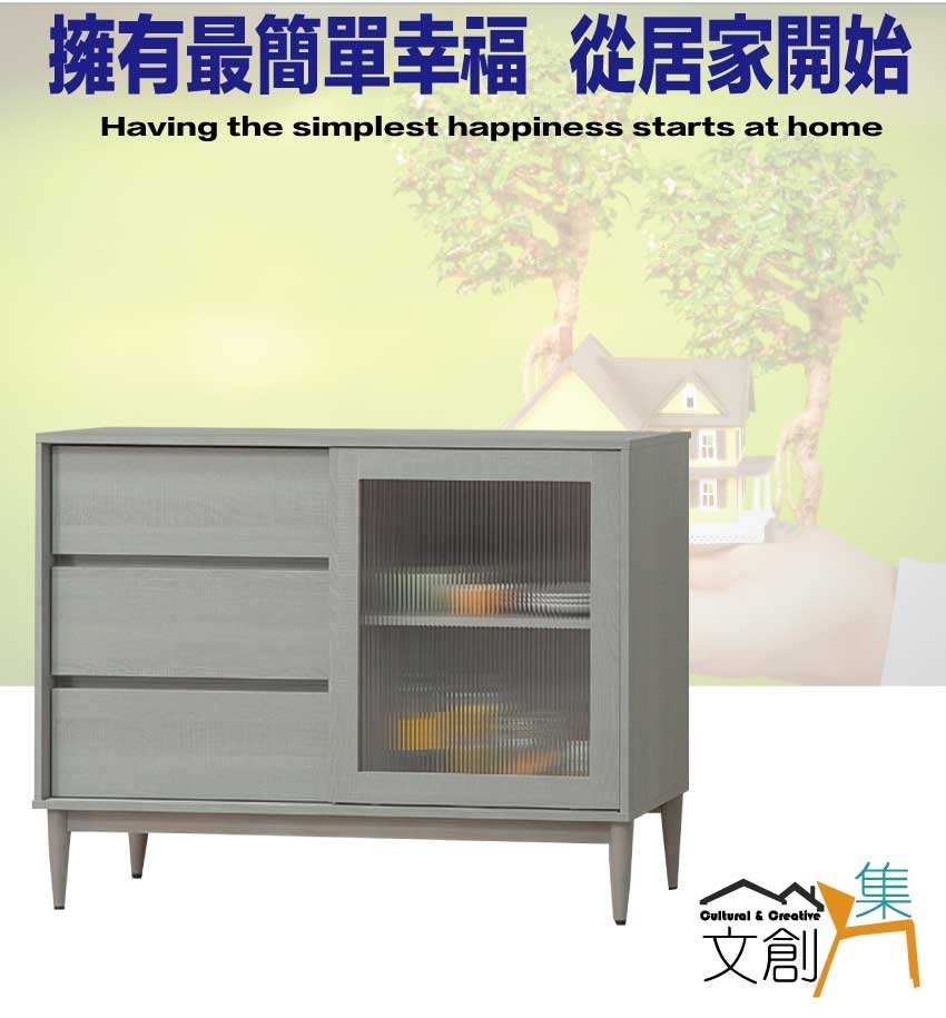 【綠家居】維亞爾4尺推門三抽低餐櫃