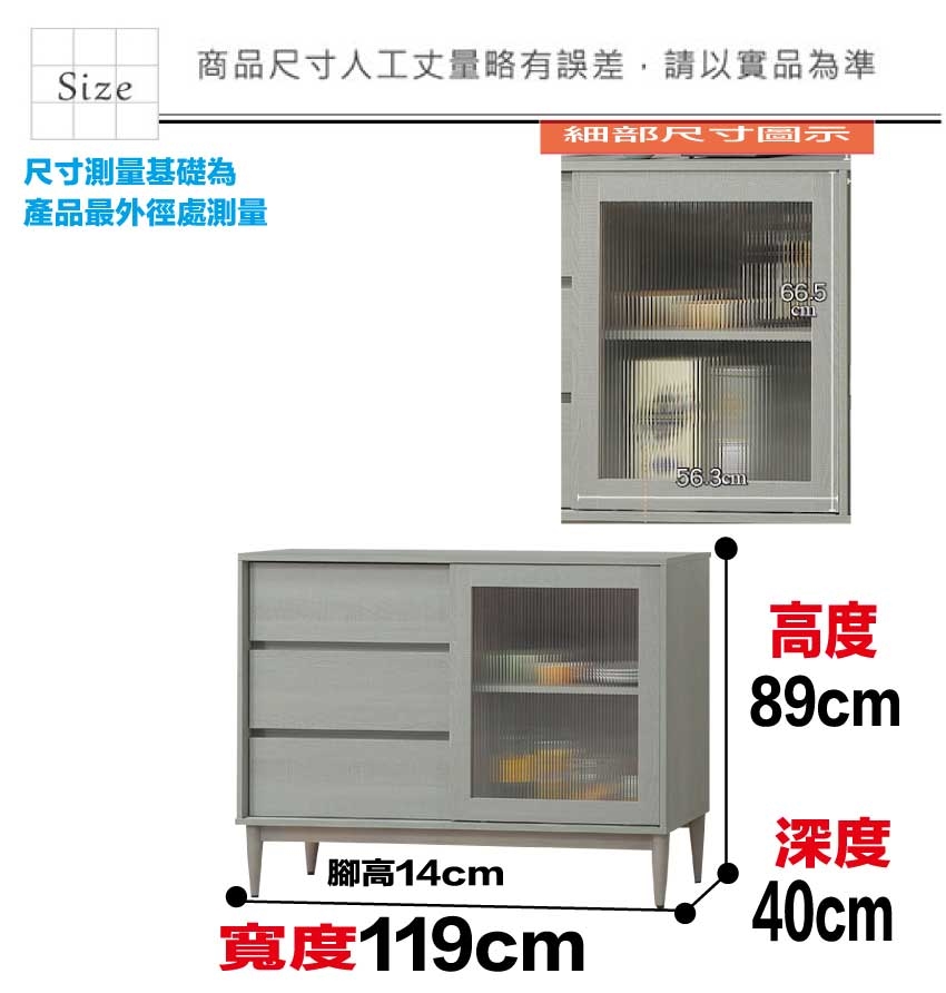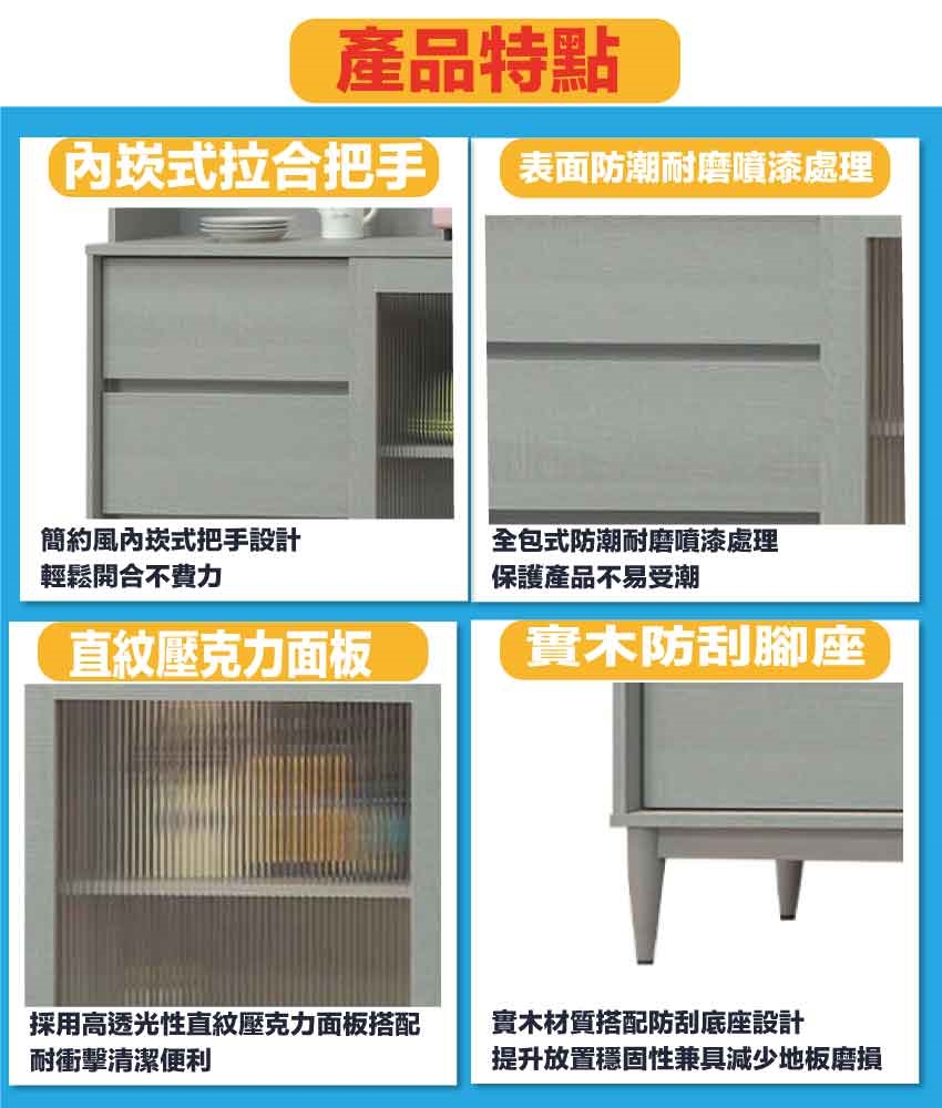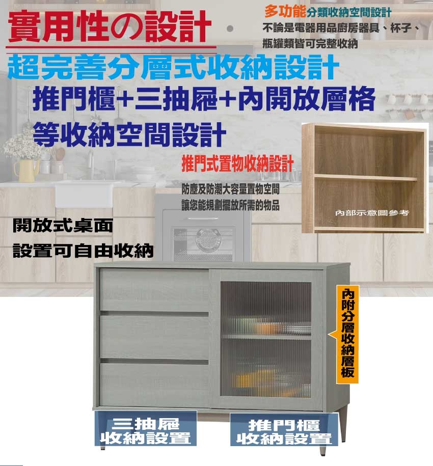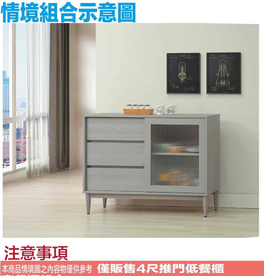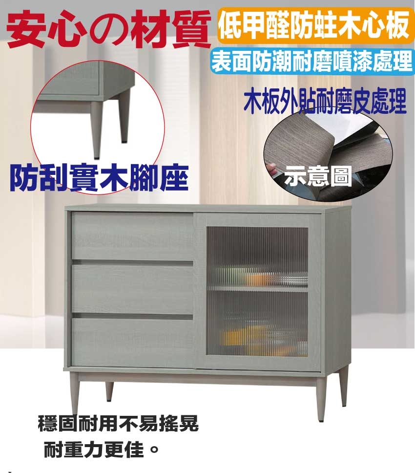 - ◆產品名稱:【綠家居】維亞爾4尺推門三抽低餐櫃