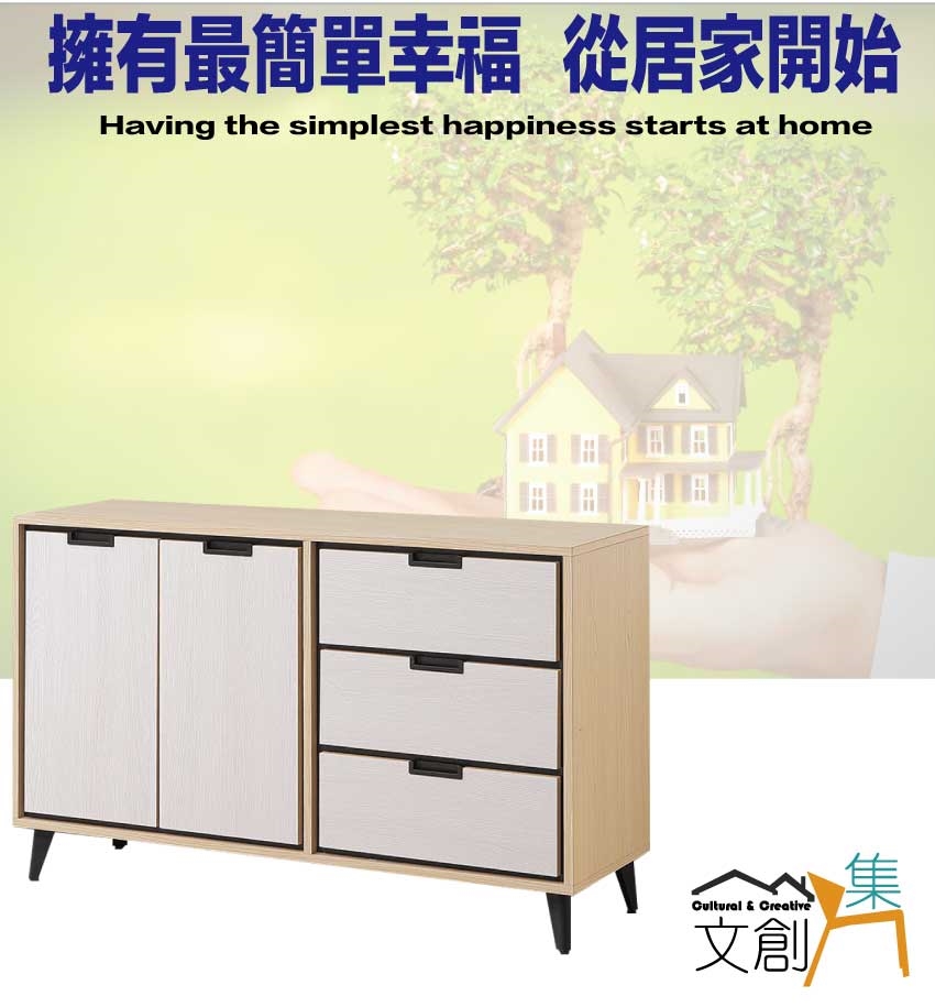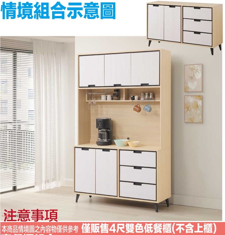 【綠家居】亞卡利雙色4尺二門三抽低餐櫃