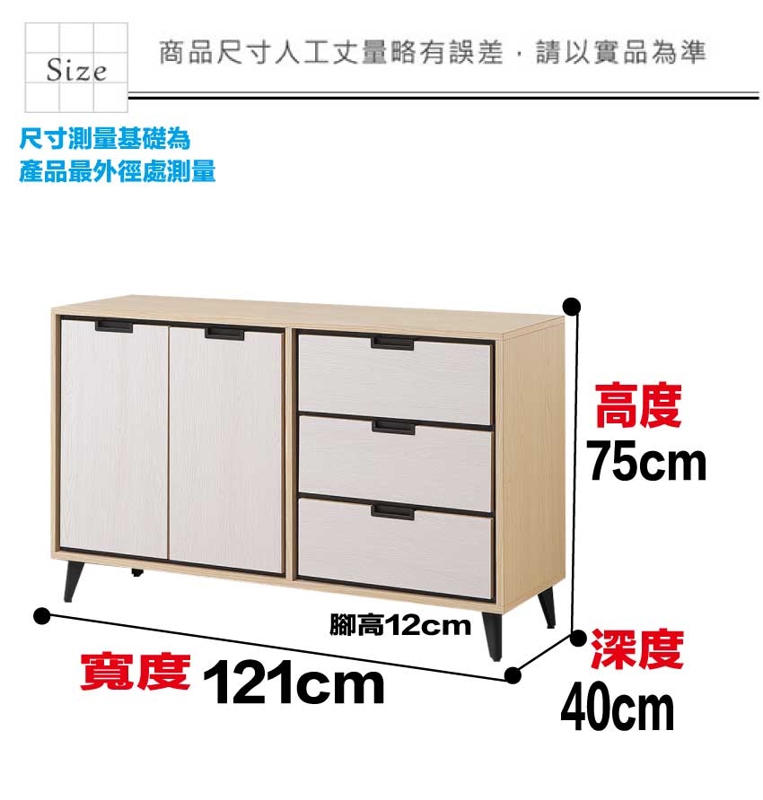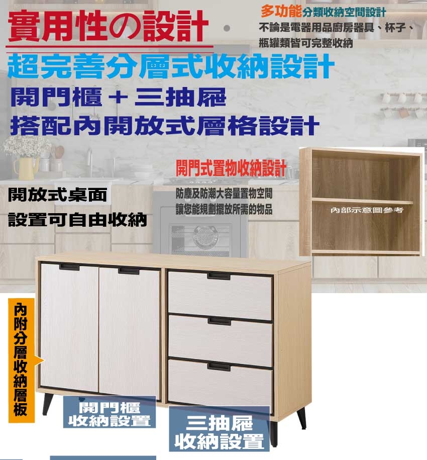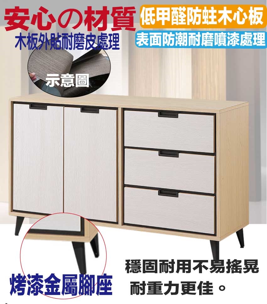 - ◆產品名稱:【綠家居】亞卡利雙色4尺二門三抽低餐櫃