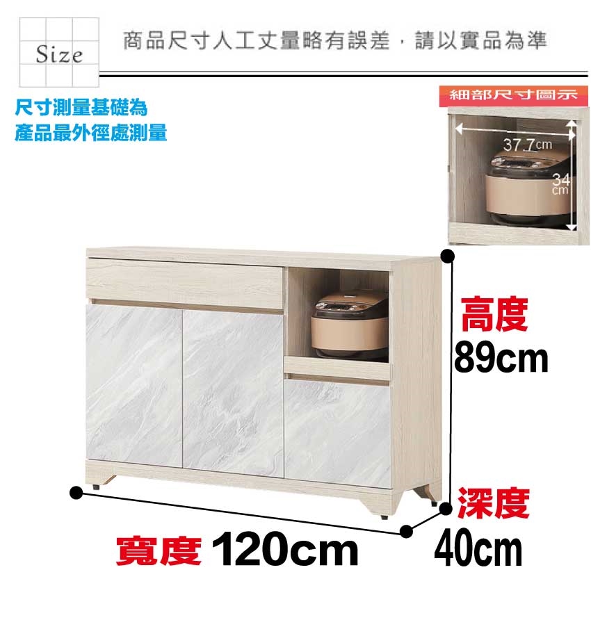 - ◆產品名稱:【綠家居】高利雙色4尺二門二抽拉盤低餐櫃