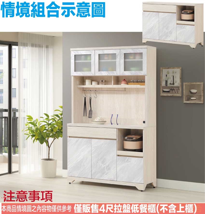 【綠家居】高利雙色4尺二門二抽拉盤低餐櫃