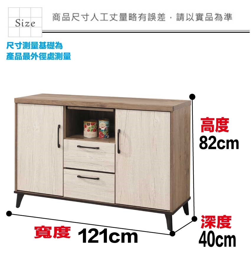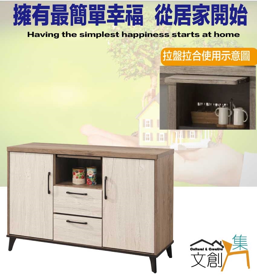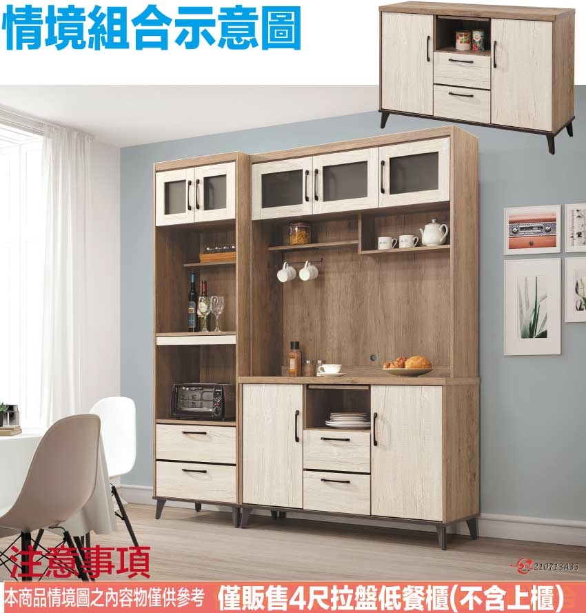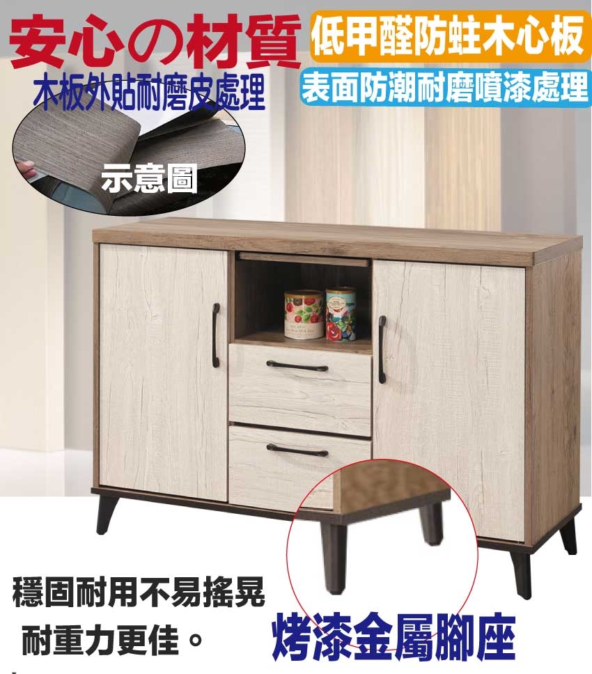 - ◆產品名稱:【綠家居】歐利雙色4尺二門二抽低餐櫃