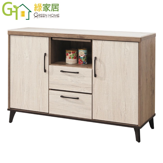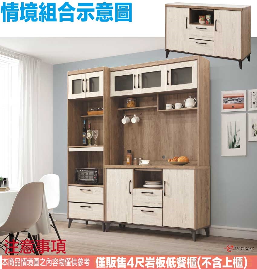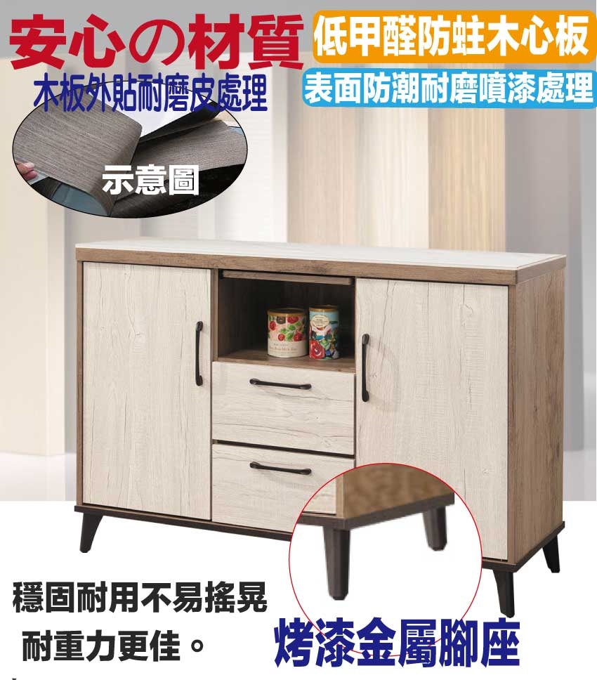 ★偏遠地區需額外加收運費,下標請先問與答詢問★ ★下訂前注意 由於商品流動較快,下訂前請先詢問是否有貨在下訂喔~★ 【綠家居】歐利岩板4尺二門二抽低餐櫃 木紋雙色系+安心材質製造,使用放心+搭配居家更便利,採用防蛀木心板+五金滑軌結構+烤漆五金腳座+12mm高硬度岩板桌面板等安心材質製造 ,外層採用防潮耐磨噴漆處理搭配採用開門櫃+二抽屜+開放層格+拉盤層架等收納空間設計,全由專人配送到家,專業安心服務,替你省下更多時間!