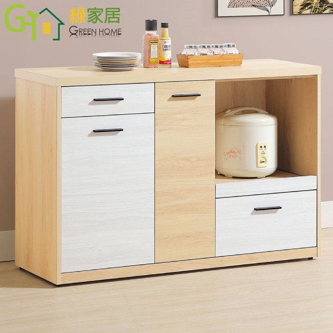 【綠家居】哥利雙色4尺單門二抽拉盤低餐櫃