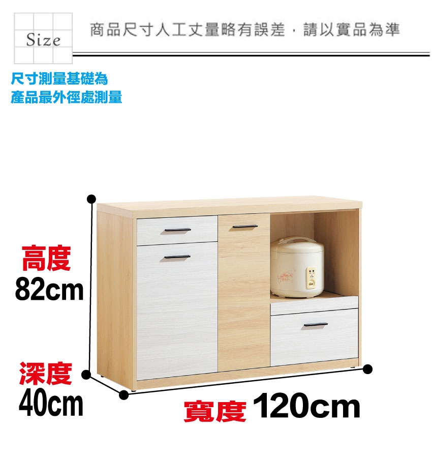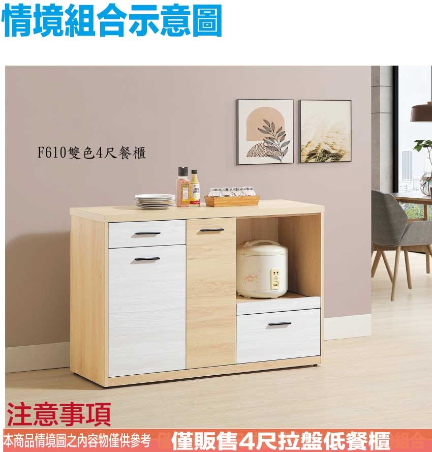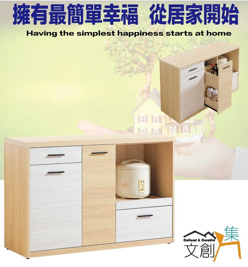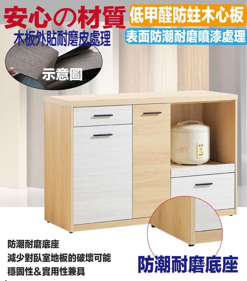 - ◆產品名稱:【綠家居】哥利雙色4尺單門二抽拉盤低餐櫃