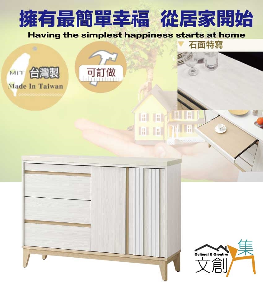 ★偏遠地區需額外加收運費,下標請先問與答詢問★ ★下訂前注意 由於商品流動較快,下訂前請先詢問是否有貨在下訂喔~★ 【綠家居】亞畢克4尺雲紋石拉盤低餐櫃 現代雙色系+安心材質製造,使用放心+搭配居家更便利,採用防蛀木心板+防刮實木腳座+五金滑軌結構+防夾手緩衝門片五金+4cm雲紋石面桌面板等安心材質製造 ,外層採用防潮耐磨噴漆處理搭配採用開門櫃+中置拉盤收納+三抽屜+內開放層格等收納空間設計,全由專人配送到家,專業安心服務,替你省下更多時間!