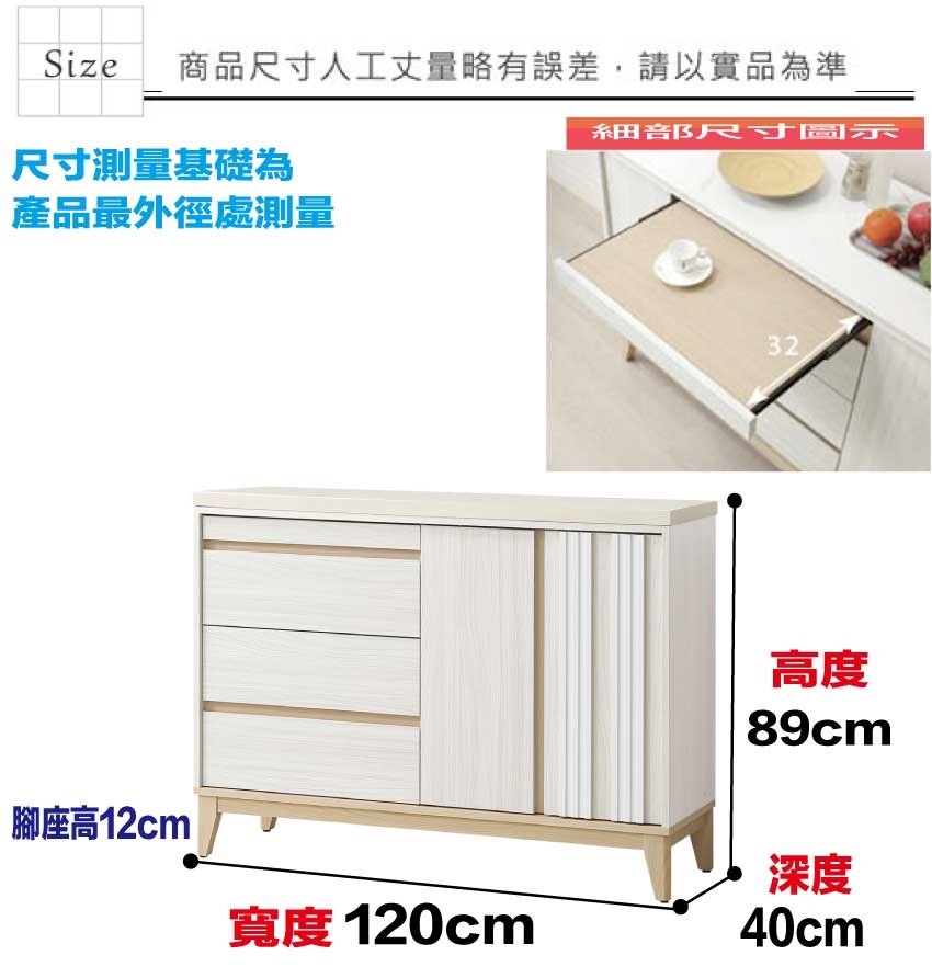 - ◆產品名稱:【綠家居】亞畢克4尺雲紋石拉盤低餐櫃