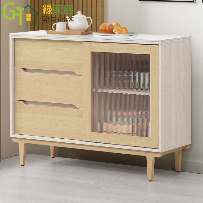 【綠家居】菲可雙色4尺推門岩板餐櫃
