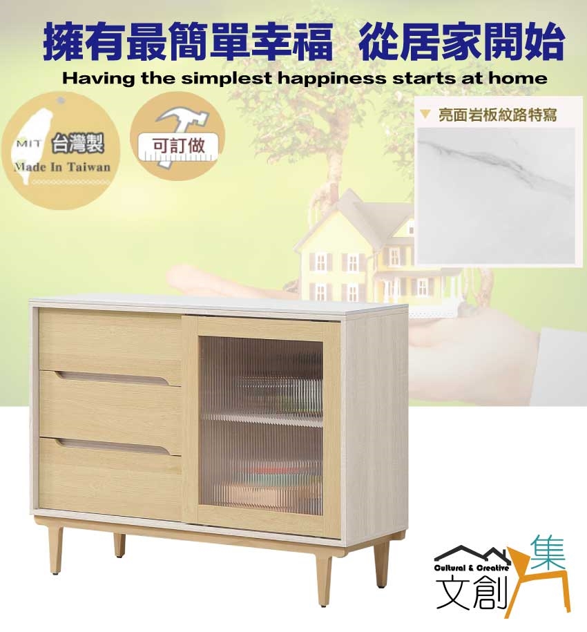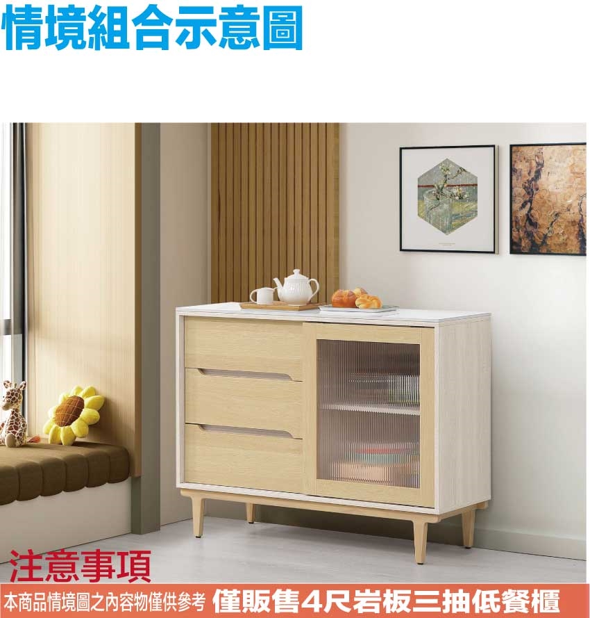 - ◆產品名稱:【綠家居】菲可雙色4尺推門岩板餐櫃