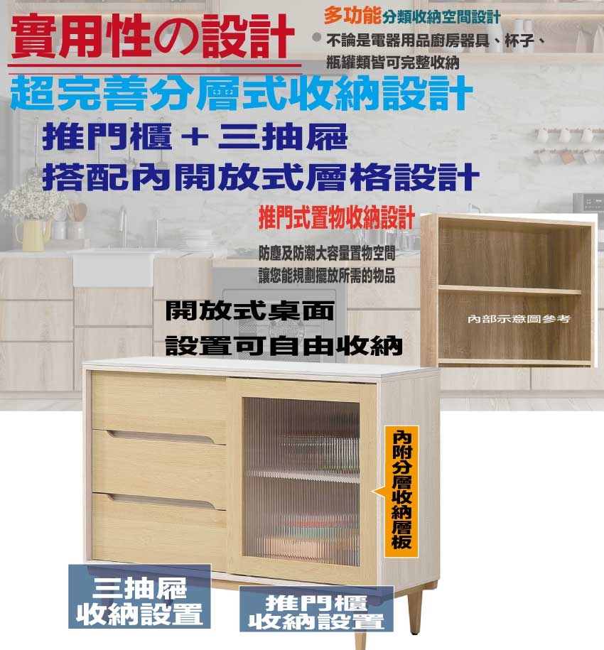 推門櫃+三抽屜+內開放層格