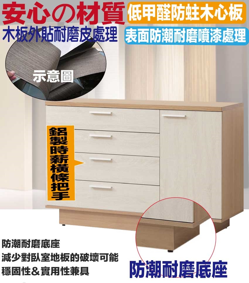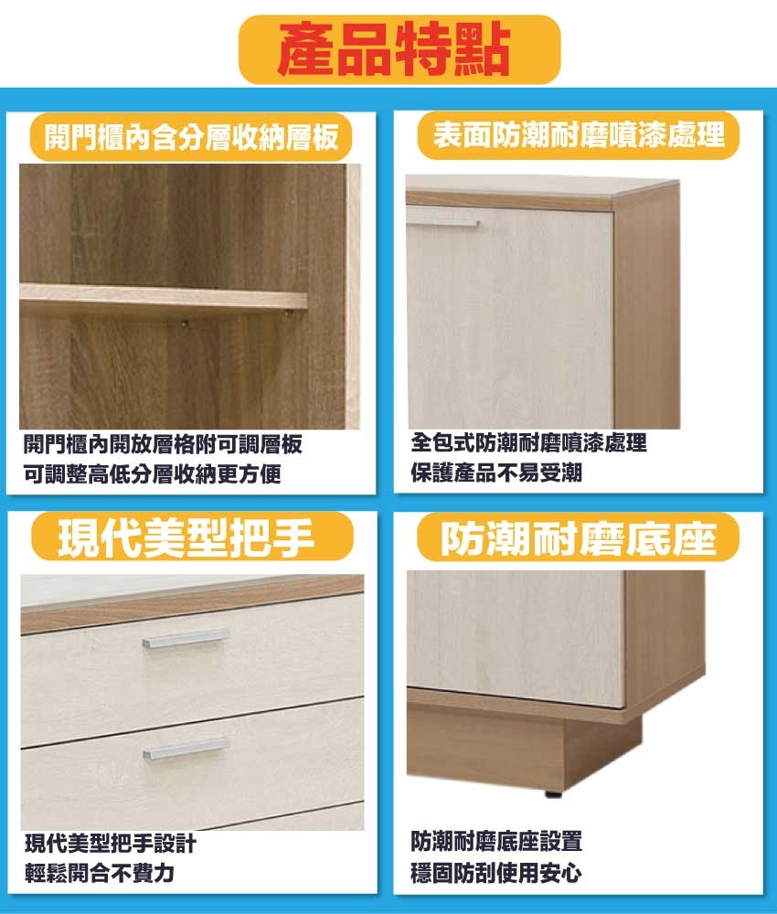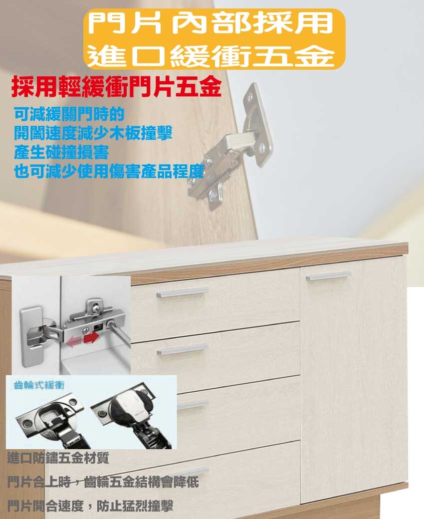 材質:防蛀木心板+防刮耐磨底座+防夾手緩衝門片五金