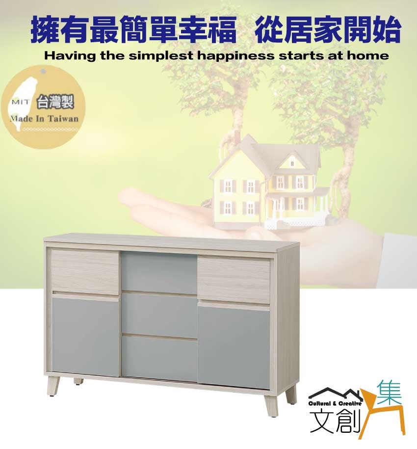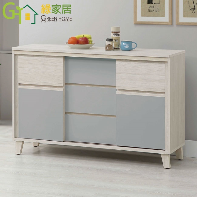 【綠家居】奇伊雙色4尺推門三抽低餐櫃