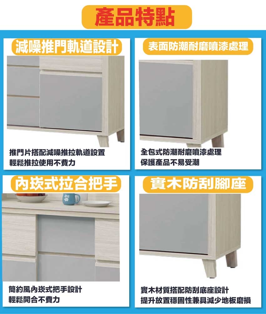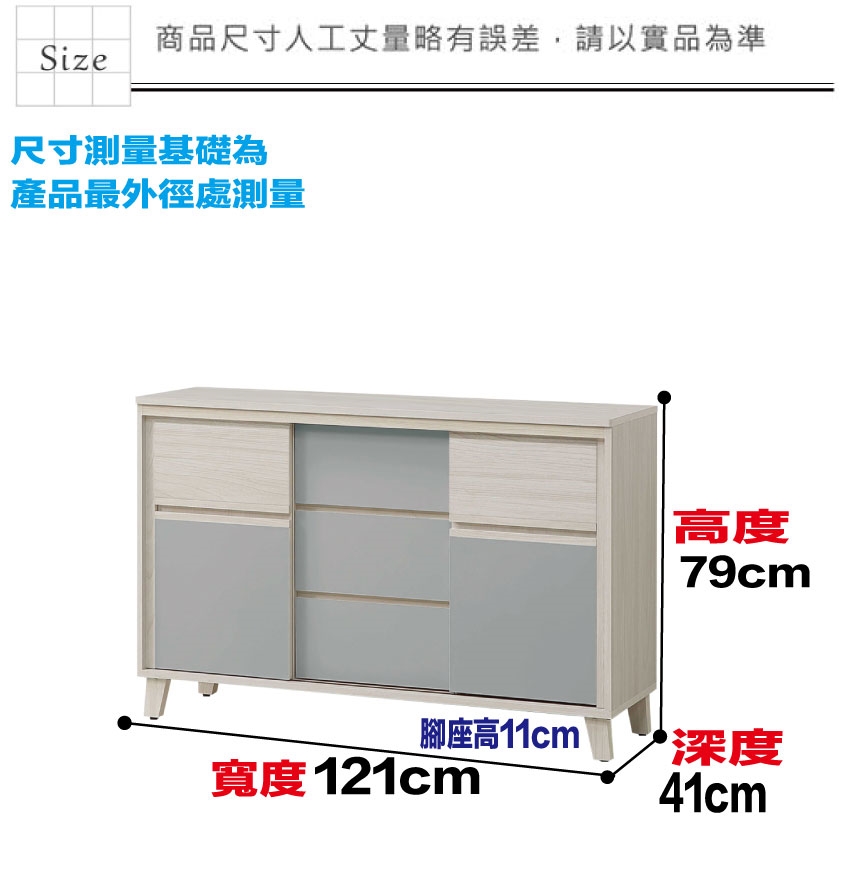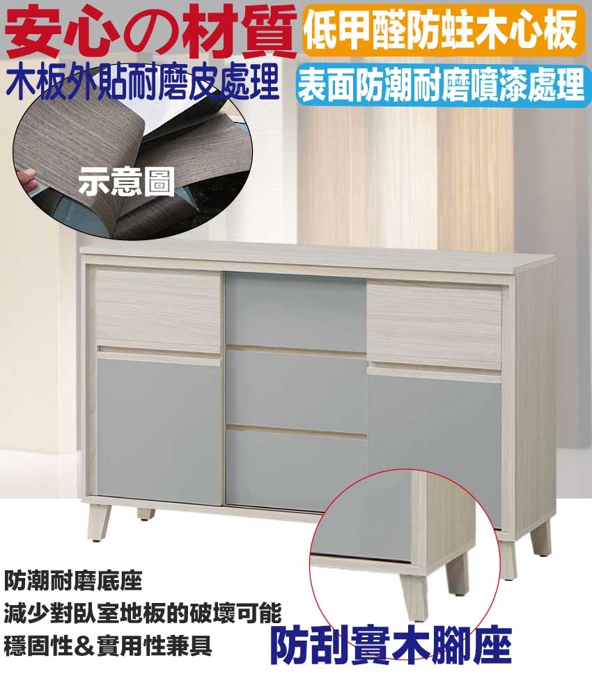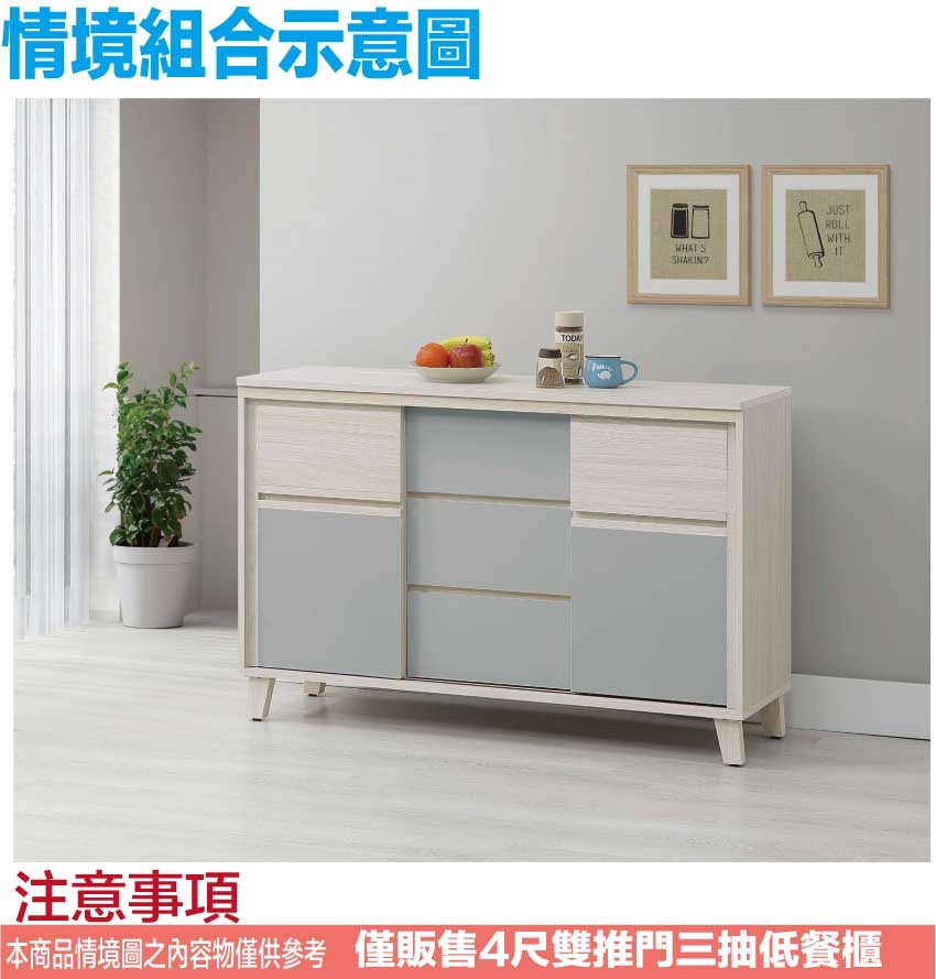 - ◆產品名稱:【綠家居】奇伊雙色4尺推門三抽低餐櫃