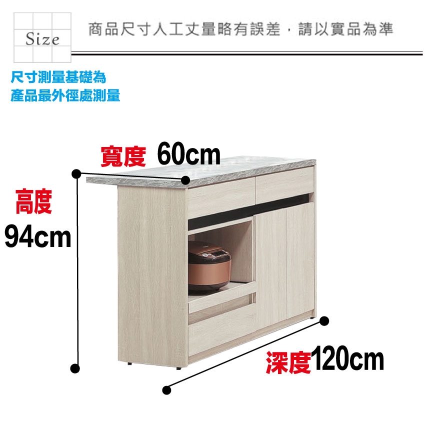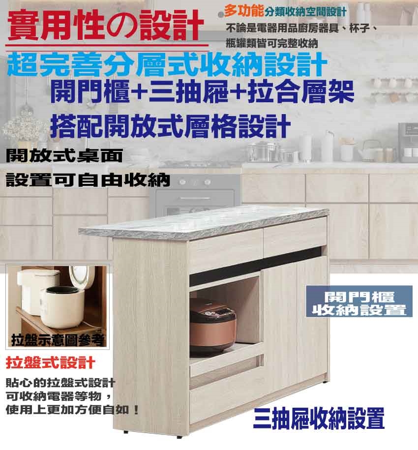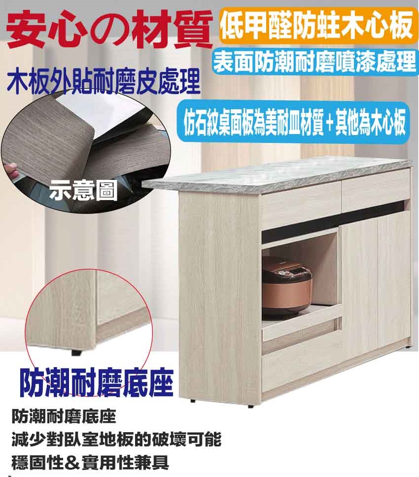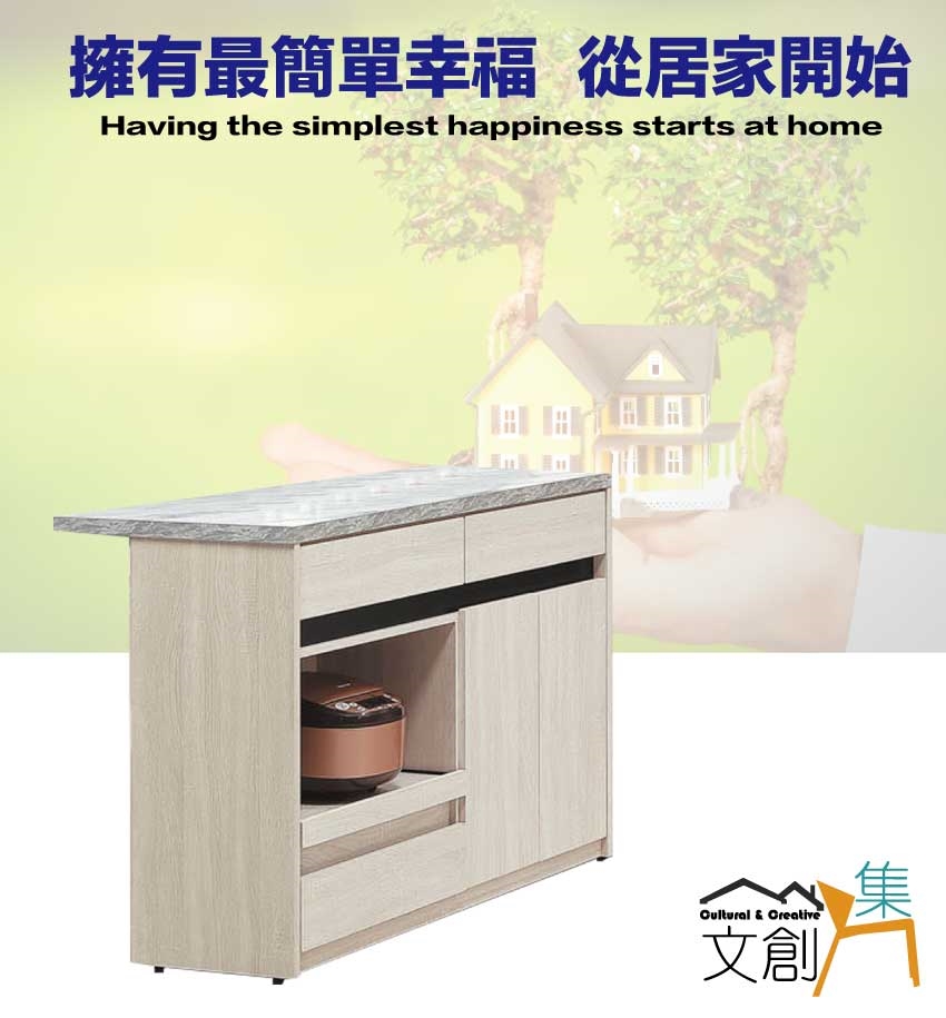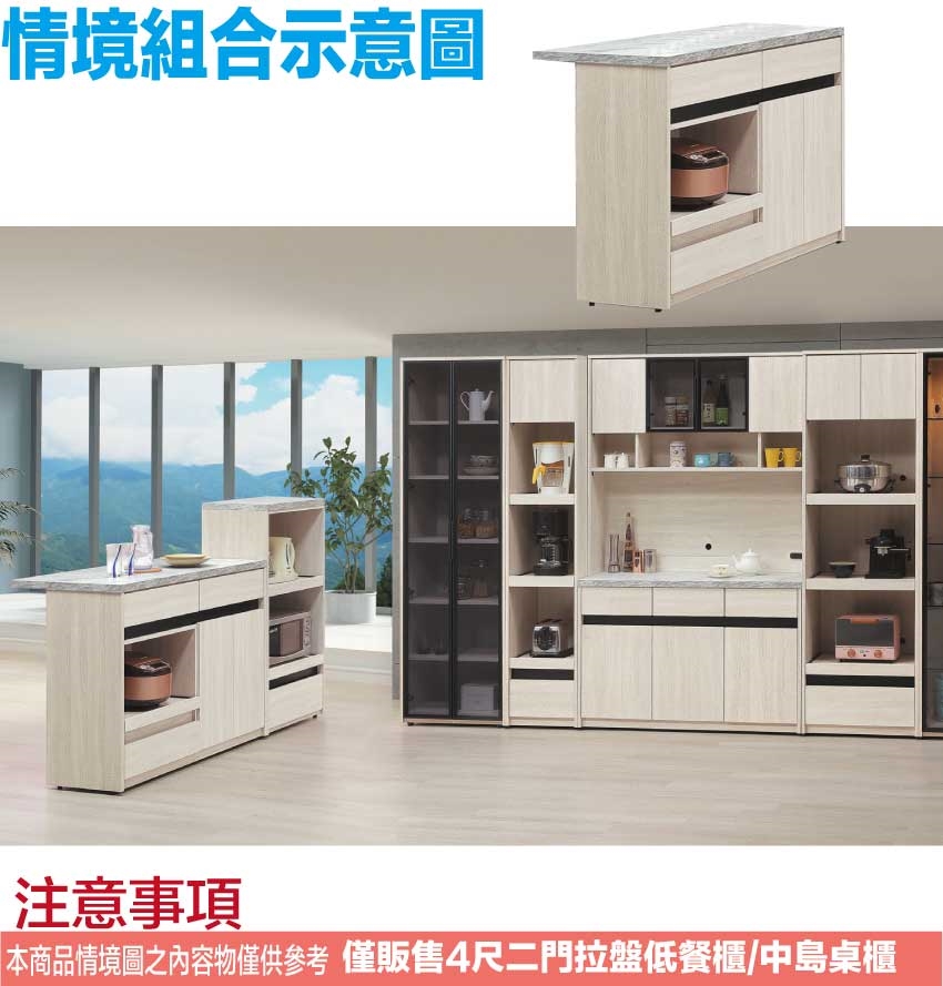 - ◆產品名稱:【綠家居】達斯4尺二門三抽拉盤中島桌櫃