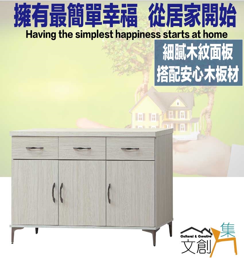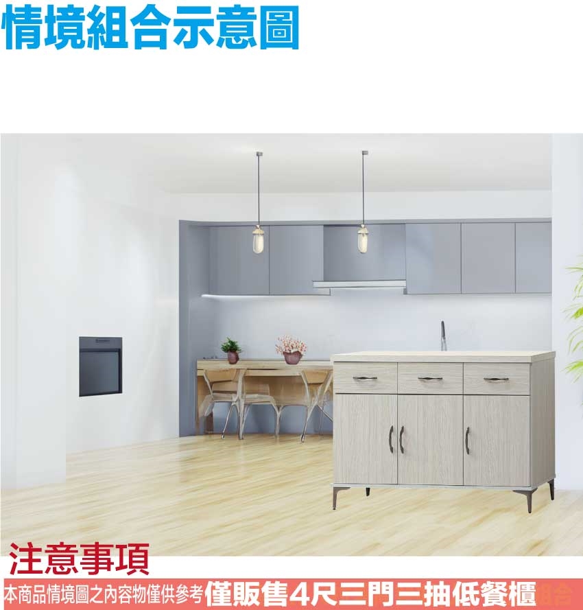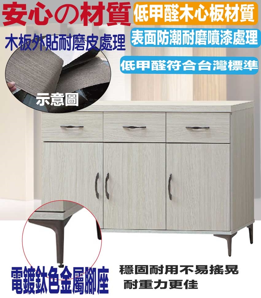 - ◆產品名稱:【綠家居】克亞4尺三門三抽低餐櫃