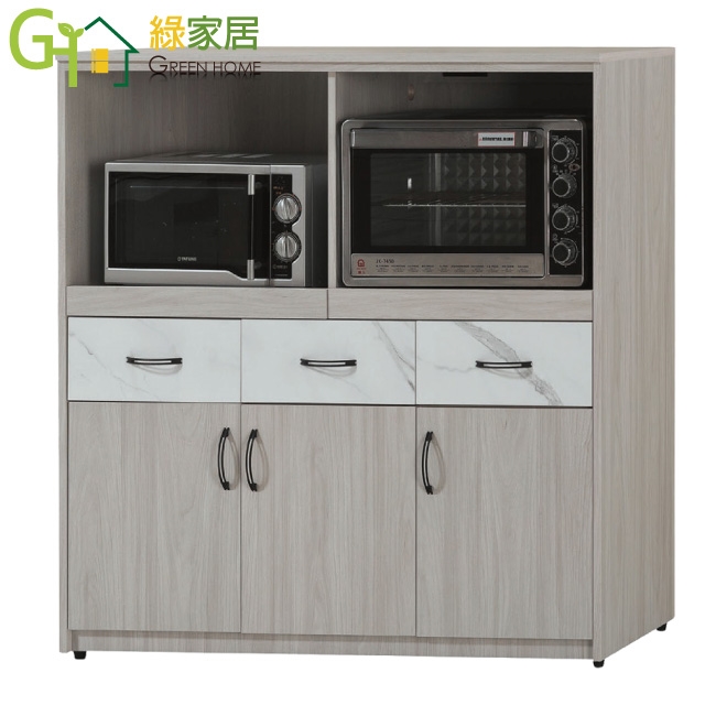 【綠家居】皮登4尺三門雙拉盤中低電器櫃/餐櫃(仿大理石紋路耐磨美耐皿面板)