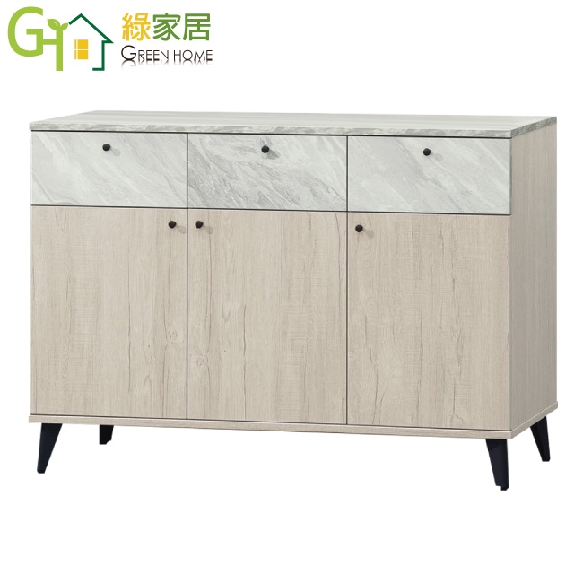 【綠家居】皮瑟4尺三門三抽低餐櫃(仿大理石紋路耐磨美耐皿面板)