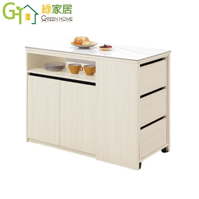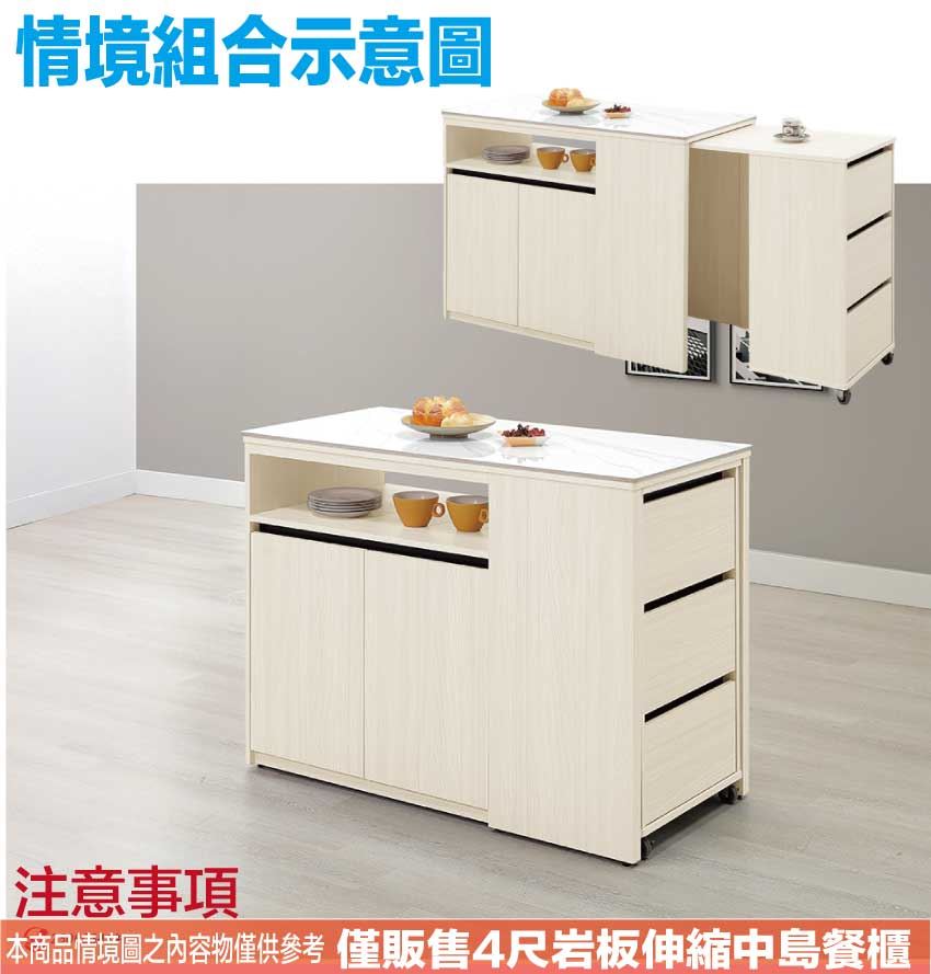 【綠家居】凱拉4尺岩板可伸縮中島桌櫃/收納櫃(櫃身可伸縮變化中島桌使用)