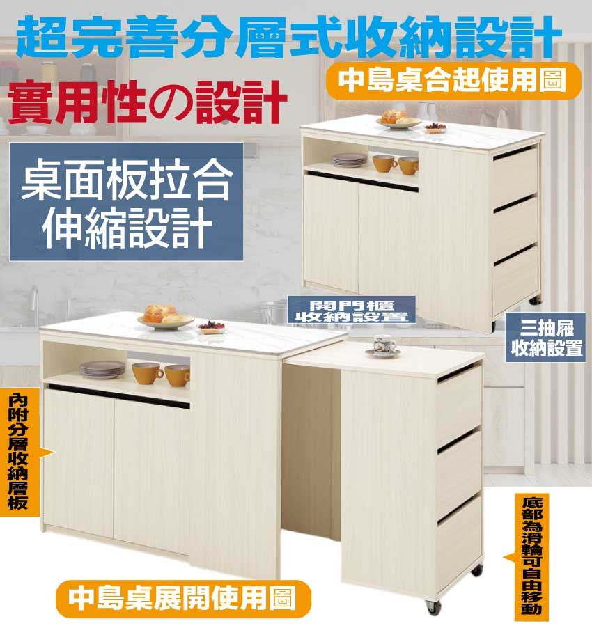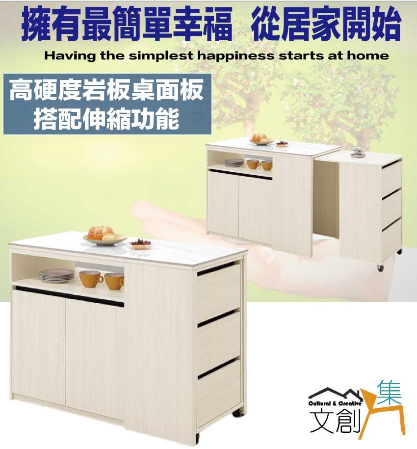 - 產品名稱:【綠家居】凱拉4尺岩板可伸縮中島桌櫃/收納櫃(櫃身可伸縮變化中島桌使用)