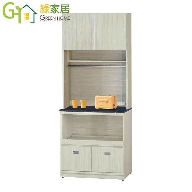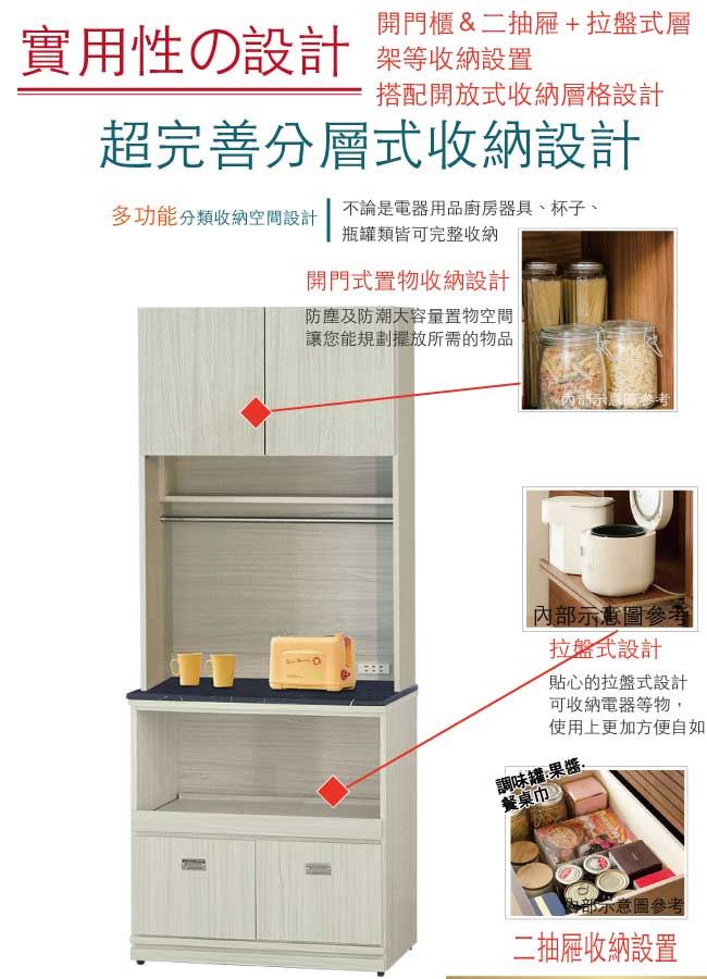 【綠家居】曼谷 現代2.7尺雲紋石面餐櫃/收納櫃組合(上+下座)