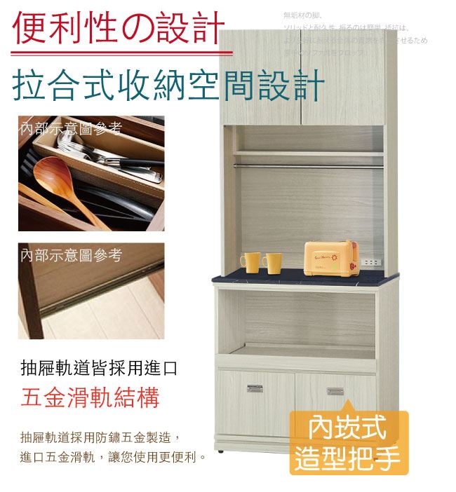商品介紹 | 【綠家居】曼谷 現代2.7尺雲紋石面餐櫃/收納櫃組合(上+下座) 雪松木紋色系+現代簡約風格+安心材質製造,整體採用防蛀木心板+五金滑軌結構+1.2cm雲紋石面+耐磨防刮腳座等安心材質製造,外層採用優利坦全包式耐磨噴漆處理搭配採用開門櫃+二抽屜+拉合式層架+開放式層格等收納設計,全由專人配送到家,專業安心服務,替你省下更多時間! 【商品特色】 雪松木紋色系+現代簡約風格+安心材質製造,使用放心+搭配居家更便利 採用防蛀木心板+五金滑軌結構+1.2cm雲紋石面+耐磨防刮腳座等安心材質製造 採用開門櫃+二抽屜+拉合式層架+開放式層格等收納設計 此商品不需要DIY組立,此商品為組立後之成品 品質保證、專業設計、貼心服務 全由專人配送到家,專業安心服務,替您省下更多時間 |