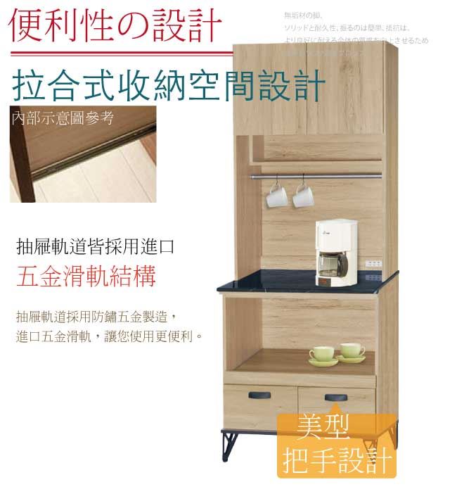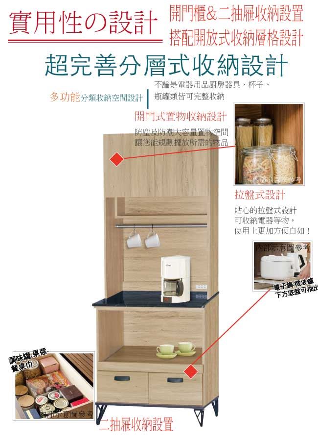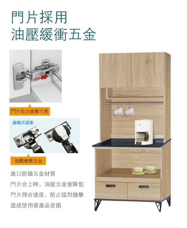 【綠家居】哈立爾 橡木紋2.7尺拉盤雲紋石面餐櫃組合