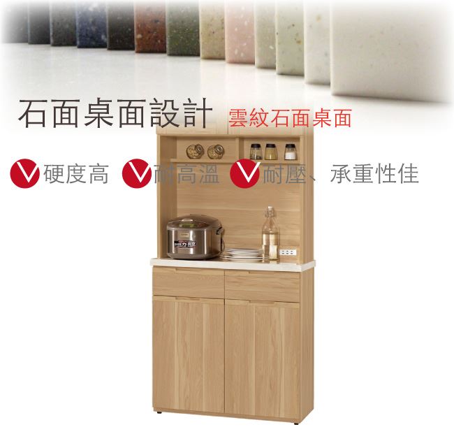 【綠家居】班尼 時尚2.6尺雲紋石面高餐櫃組合